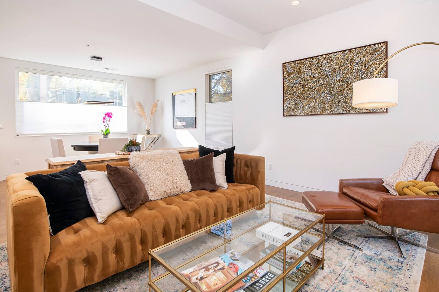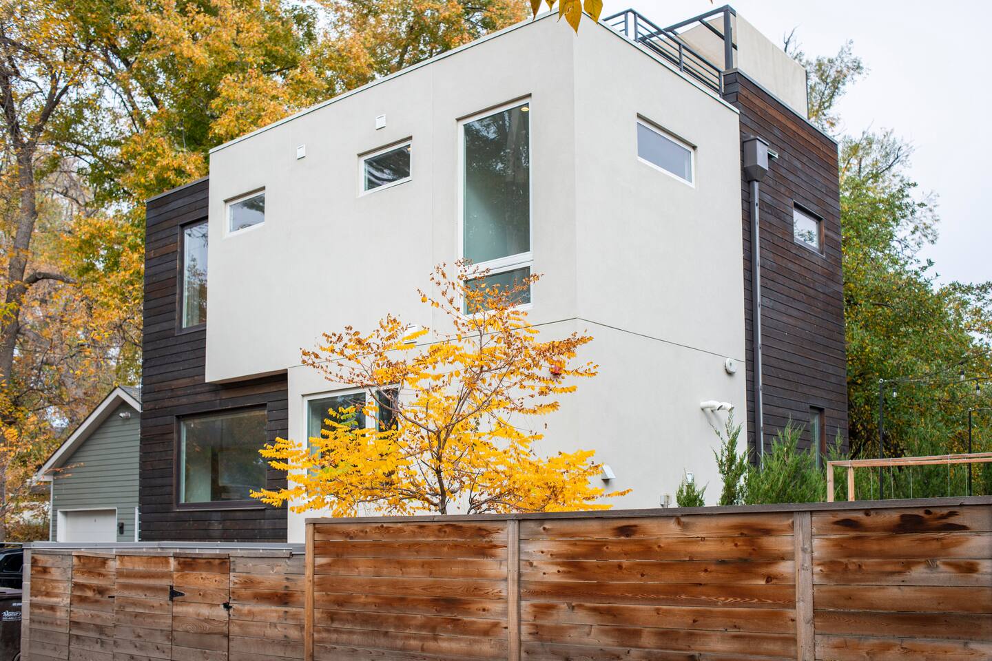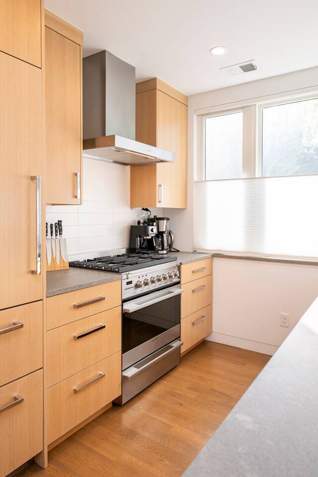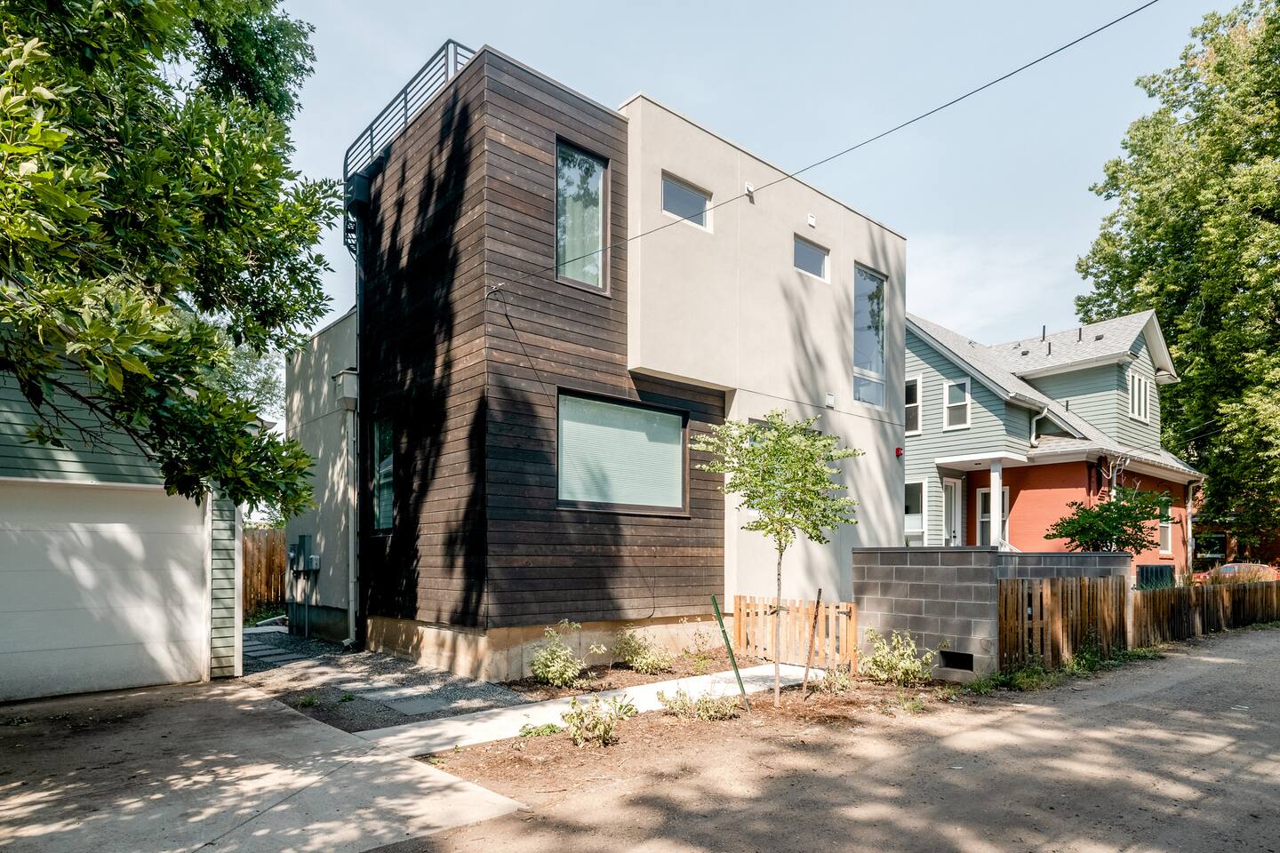 Take in the view of the Flatirons over a morning coffee on 1 of 3 decks at an airy, light-filled escape. Nestled in a tranquil spot 3 blocks from Pearl Street, this crisp, minimal pad blends tan leather with rugged wood and an Aboriginal paintings. Kitchen/Dining/Living Room: This brand new abode offers an open kitchen, living and dining area with contemporary finishes, stainless steel appliances and hardwood floors throughout. This is a fully stocked kitchen with everything you need to cook the yummiest of meals. Afterwards, enjoy a glass of wine with friends and family while sitting around the gas fireplace. Bedrooms: There are two bedrooms on the second level. The Master Suite has its own bathroom, a king size bed and a large closet for storage. The second bedroom has a queen size bed, desk, chair and monitor, making this a perfect spot for those traveling for business. Both bedrooms open onto a deck, overlooking the property. Bathrooms: The first bathroom is on the lower level of the home when you first walk in. It has one sink and walk-in shower, and is fully stocked with shampoo, conditioner, soap and clean towels. The second bathroom is part of the master suite on the second level. It has 2 sinks, a walk-in shower and is, of course, fully stocked with shampoo, conditioner, soap, hairdryer and clean towels. Roof Top Deck: This is my favorite part of the home, with an incredible 500 sq. ft. roof top deck with stunning views of the Flatirons Mountains! The patio is bright and sunny during the day, but hang out on the lounge furniture before you hit the town and watch the sun sink behind the mountains. Parking: There is one dedicated parking space in front of my garage that is yours to use. Street parking is also available. I’m always looking forward to hosting great people. Send me an inquiry and we can start discussing some more details from there! I am always available via phone and email and if I am not in town you will have the number of someone who is local incase you run into any issues. This urban oasis is set back away from the street in a quiet area by the creek, yet just a 5-minute walk from Pearl Street, the creek path, and a farmers' market. Restaurants, bars, music venues, parks, and entertainment are all also close by. You are about a 5 minute walk to the bus station which will take you to and from the airport, downtown Denver or other parts of Boulder. You can also use the bike lanes to get around town and everything downtown is just an easy walk. If you are thinking about doing hikes or spending time in the mountains I would highly recommend renting a car.